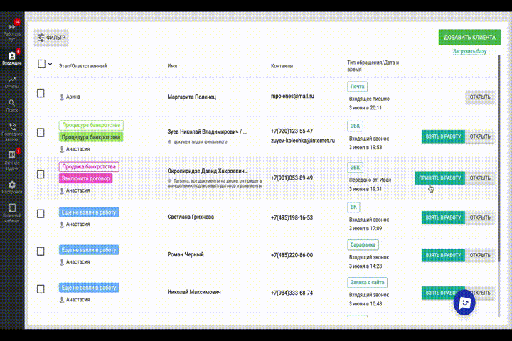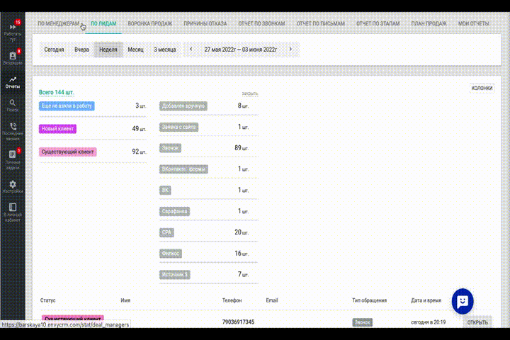 Мониторинг входящих заявок. Оценка рентабельности по источникам рекламы. Контроль за сотрудниками - показывает каждое действие сотрудника от оставленного комментария до эффективности его работы. Мощный инструмент для руководителя, позволяющий контролировать нагрузку сотрудников по задачам.