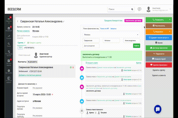 Документы формируются автоматически. Достаточно один раз внести информацию по клиенту и десяток шаблонов документов будут готовы. Это освобождает сотрудника от рутинной работы, что позволяет сосредоточиться на более важных задачах.
